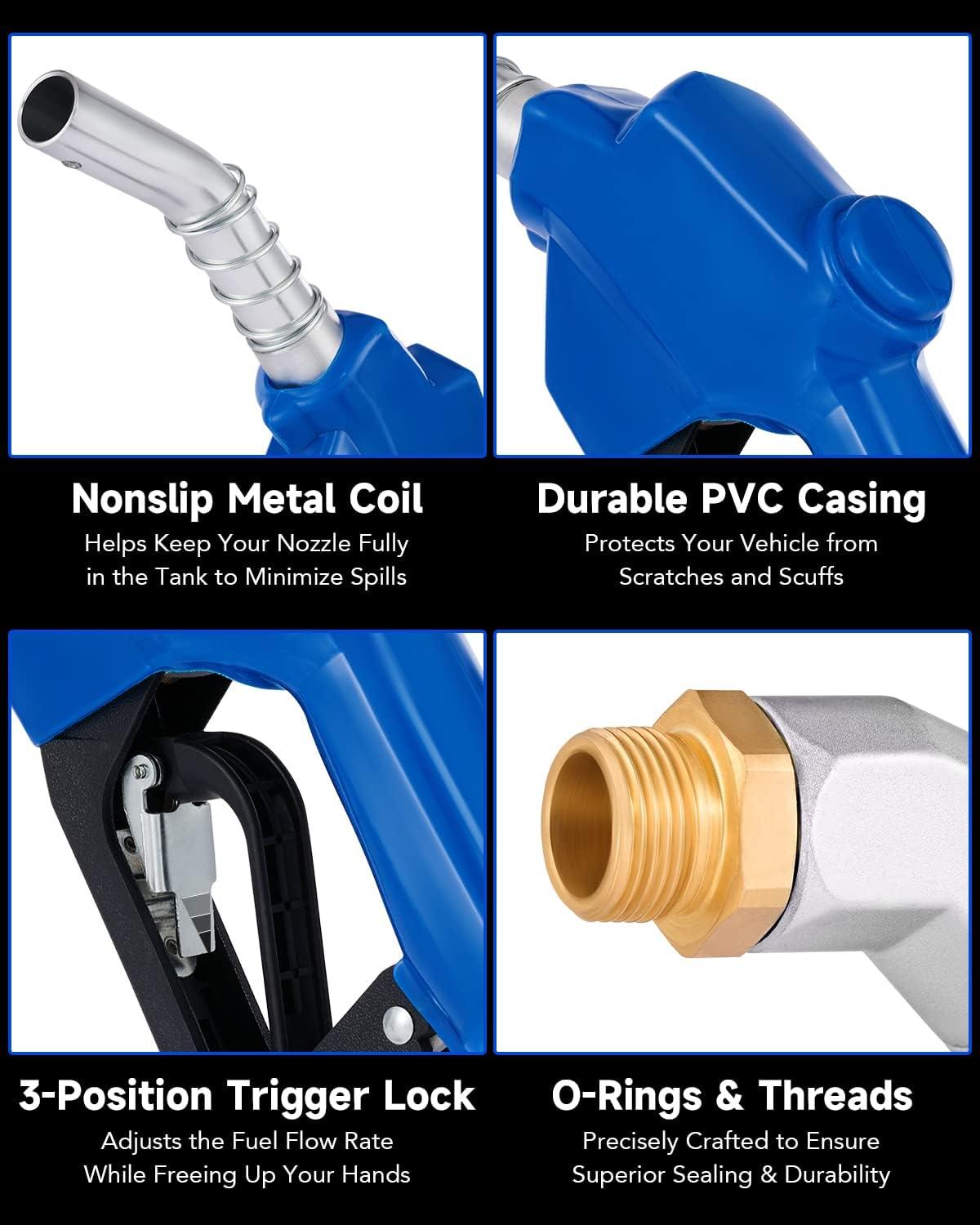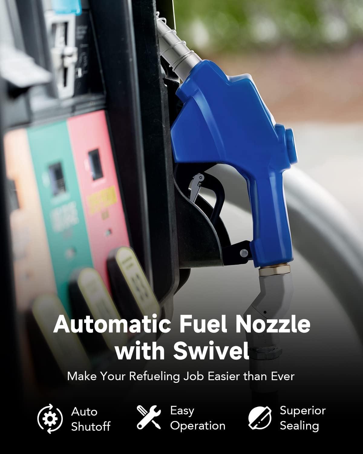 Fast Fueling with No Overfills: Our fuel and gas nozzle offers 3 flow rate options with a maximum of 32 gpm but automatically shuts off when your fuel tank is full. Please ensure a pressure pump is used, as gravity flow alone will not operate the nozzle