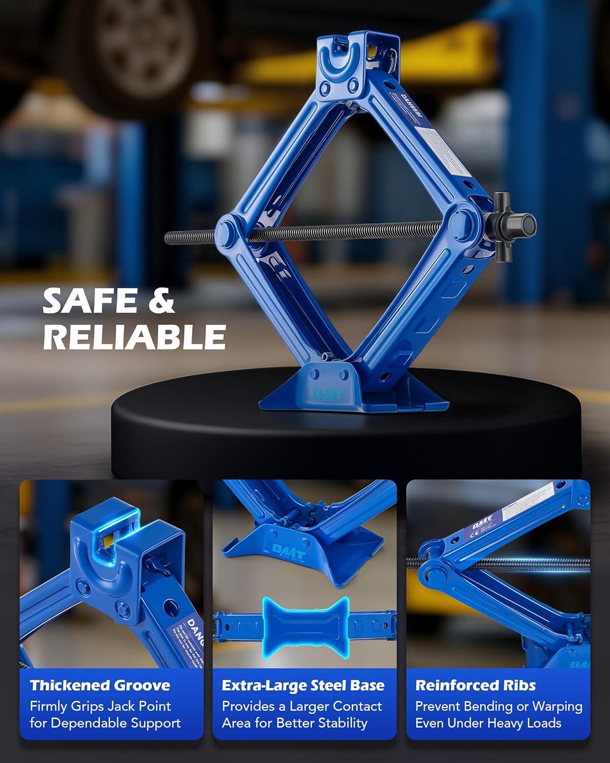 Heavy-Duty Construction: Our thickened base prevents tipping and wobbling when lifting heavy vehicles. The reinforced rolled edges and ribbed blocks ensure this scissor jack holds up under pressure