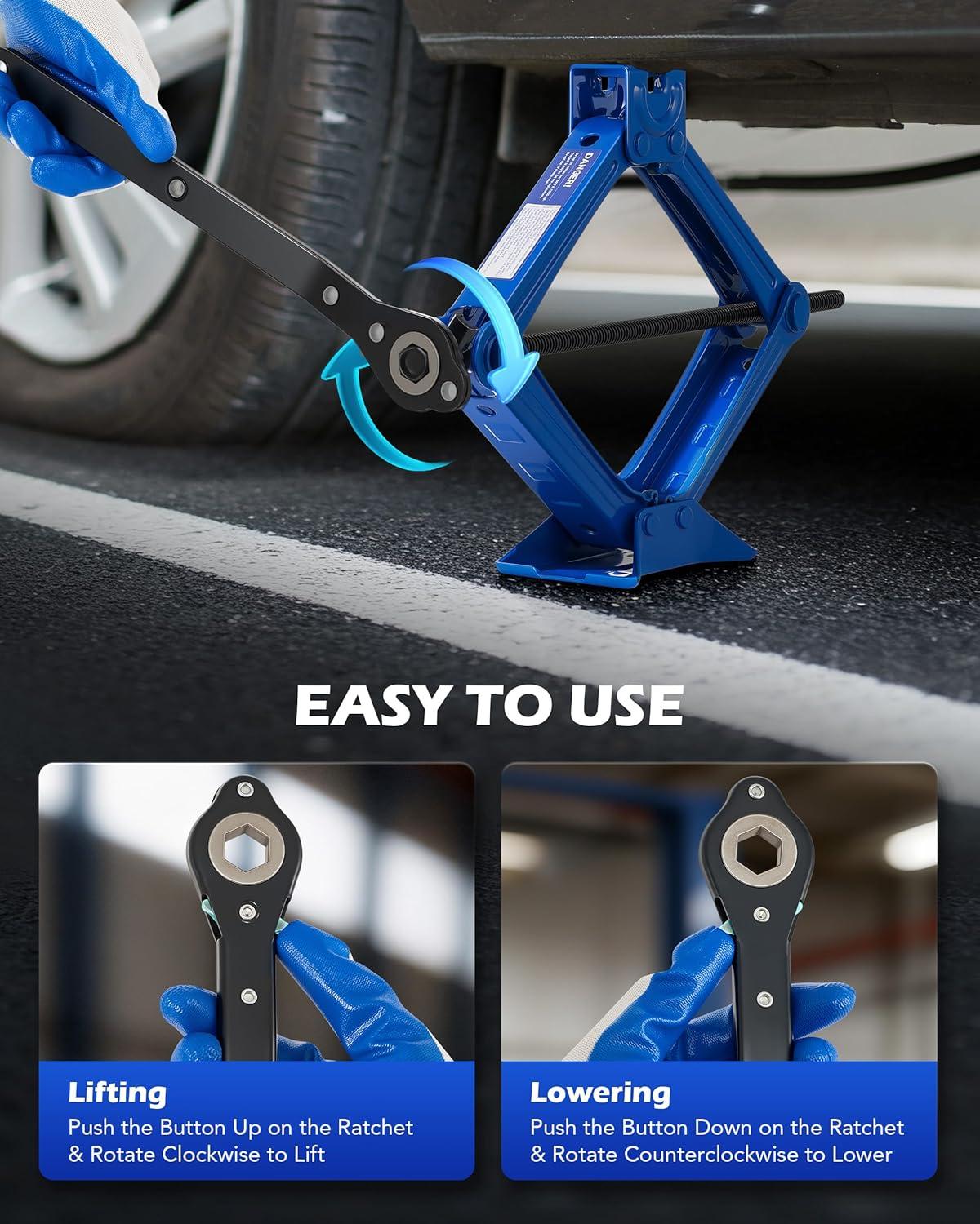 Easy to Operate: Simply rotate the screw clockwise with the included ratchet wrench to lift your vehicle. For faster lifting and lowering, you can also use an impact wrench with the included drill socket