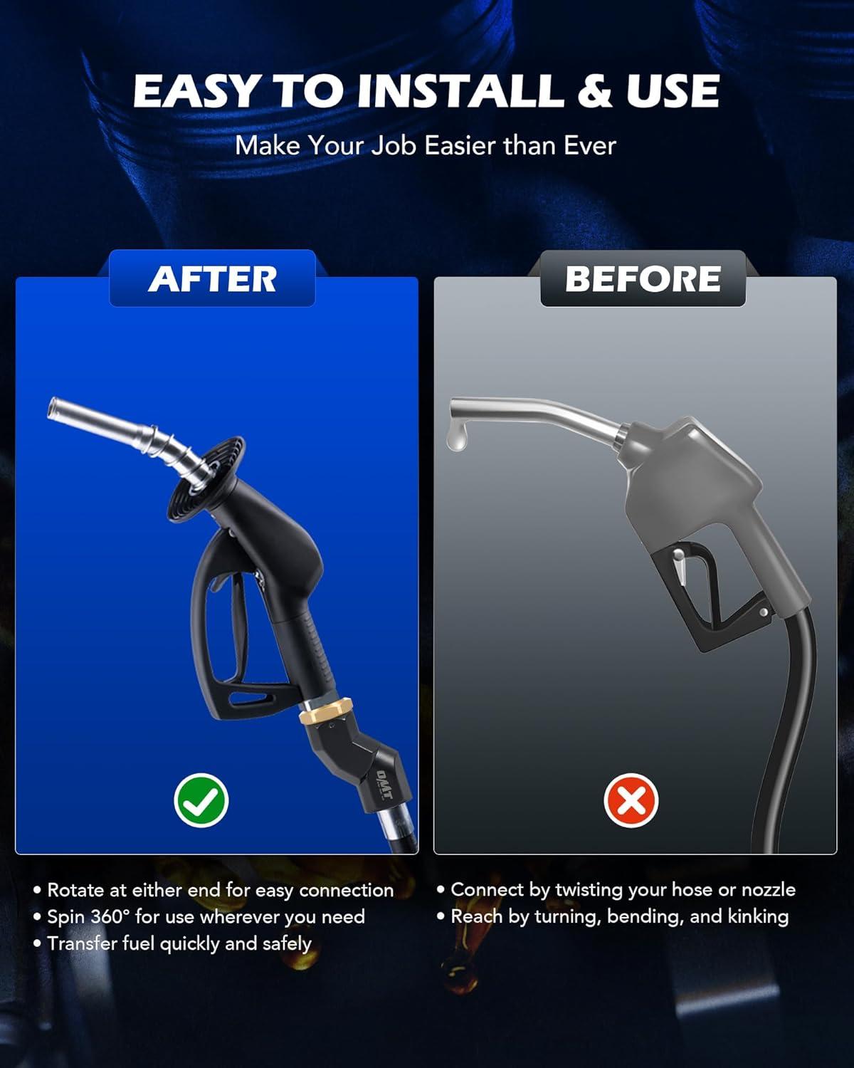 MULTI-PLANE ROTATION: This 360 degree fuel hose swivel set from Orion Motor Tech allows you to get the perfect angle, filling your tank or vehicle with greater safety and convenience