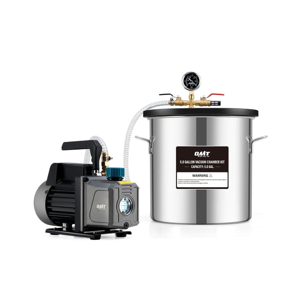 Professional Vacuum Chamber Set: This comprehensive degassing kit by Orion Motor Tech includes a powerful 1/4 hp vacuum pump, a 5 gallon chamber, a wire hose, and all the accessories needed for easy wood stabilization, silicone degassing, and various molding and casting applications.