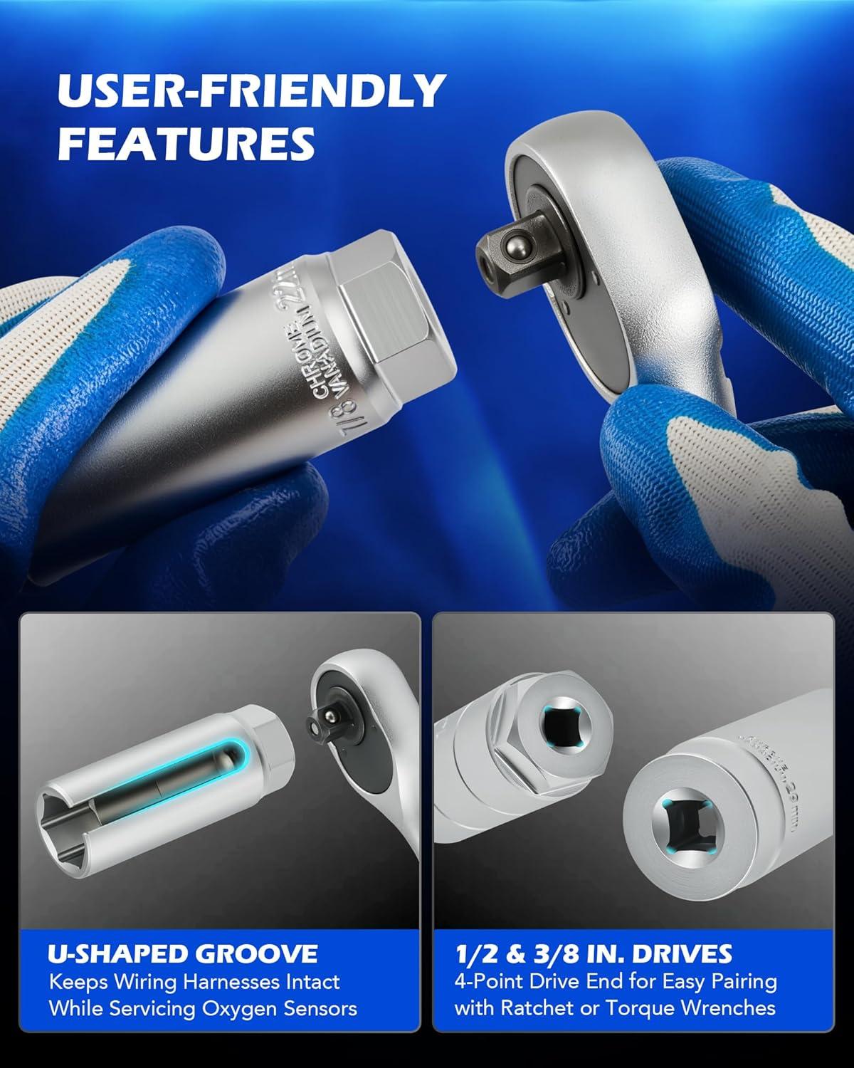 Easy to Use: Snag your favorite ratchet and the right socket in a flash! Each socket in our oxygen sensor removal kit fits standard 3/8″ or 1/2″ drive ratchets, with laser-etched sizes for quick and easy identification