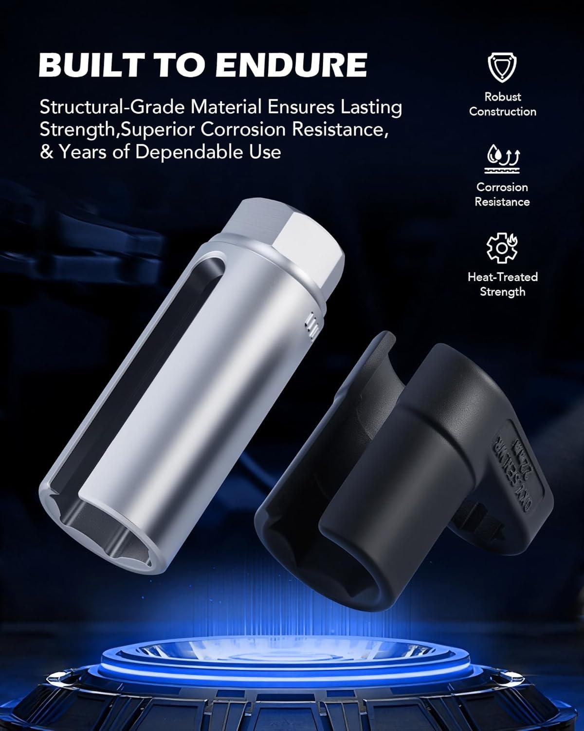 Built to Last: Made from durable Cr-V steel with a chrome finish, our O2 sensor removers resist corrosion and wear. The chrome molybdenum steel sensor wrenches, with a black oxide finish, offer extra protection against impact and moisture