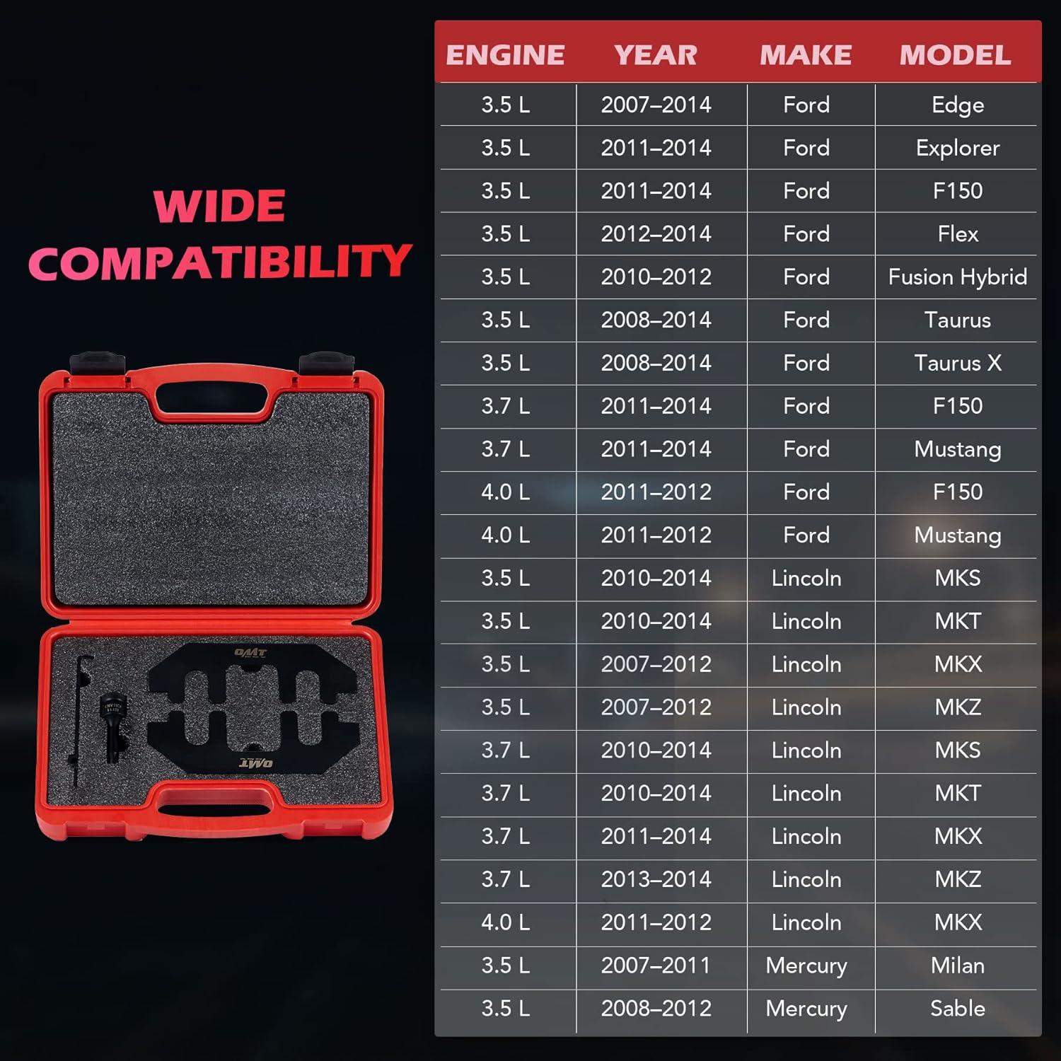 WIDE COMPATIBILITY: These OEM-equivalent engine timing alignment holder set is compatible with 3.5, 3.7, & 4.0L Ford V6 (2007-2014), 3.5, 3.7, & 4.0L Lincoln (2007-2014), and 3.5L Mercury (2007-2012)