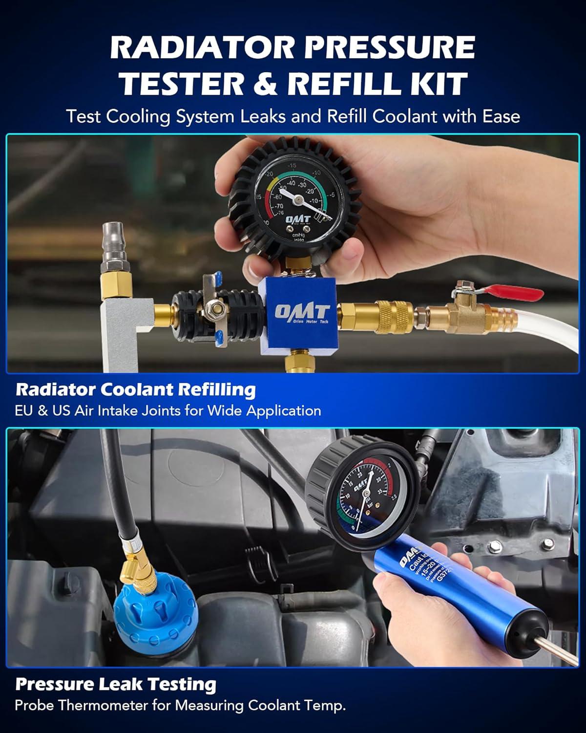 Versatile Application: This coolant vacuum refill kit identifies leaks from the header and expansion tanks, head gasket, radiator core, heater matrix, and water pump & pipes, and ensures air pocket-free coolant refilling for radiators