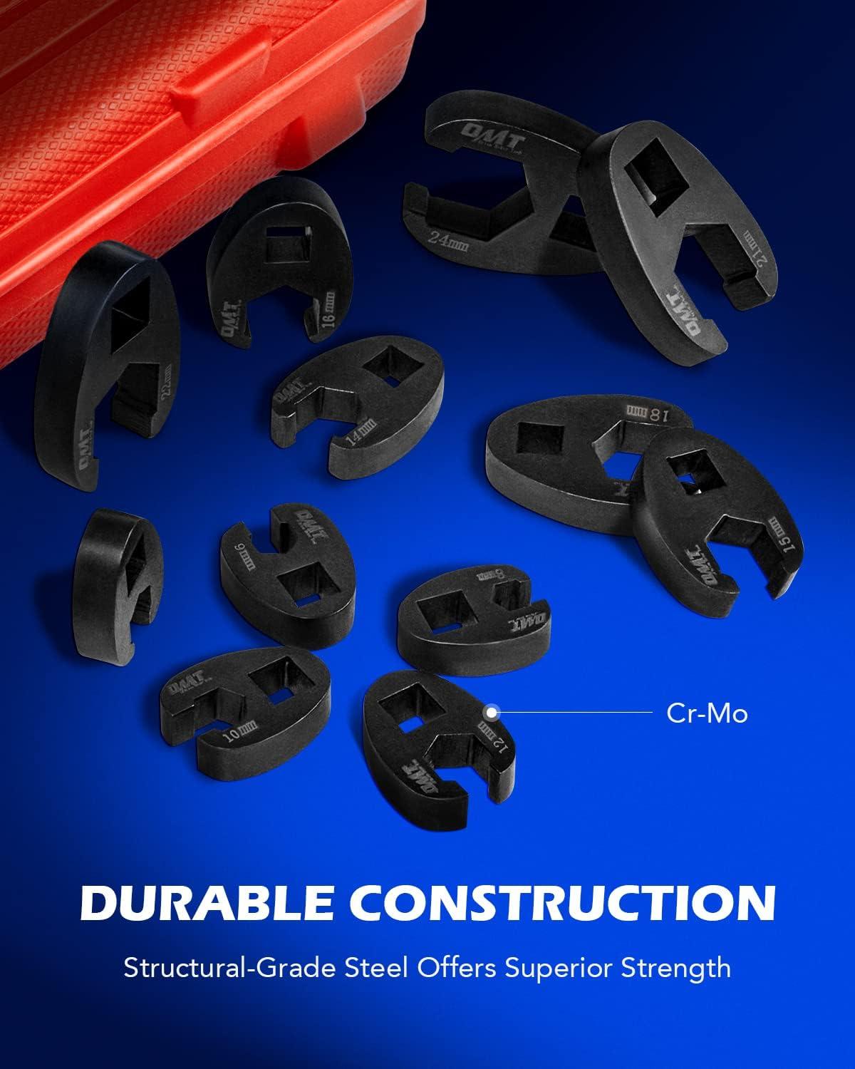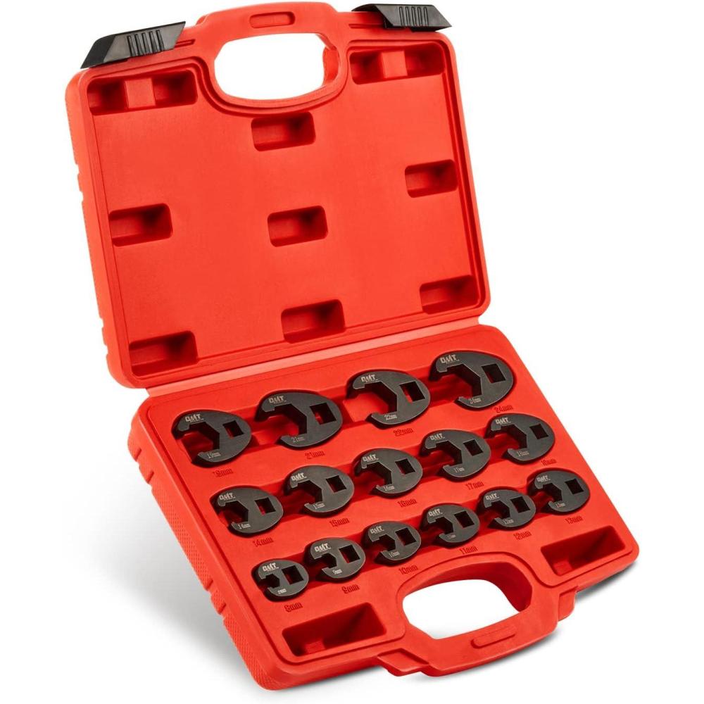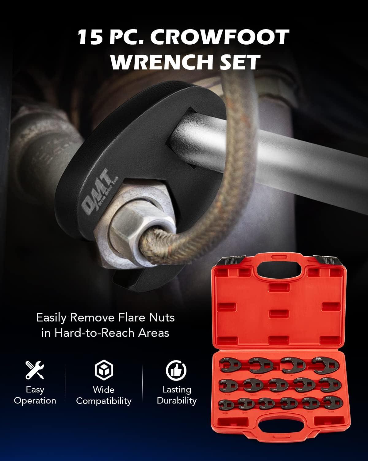 Flare Nut Removal Made Easy: Say goodbye to struggling with flare nut removal in hard-to-reach areas with Orion Motor Tech's 15-piece crowfoot wrench set, featuring metric sizes ranging from 8 mm to 24 mm