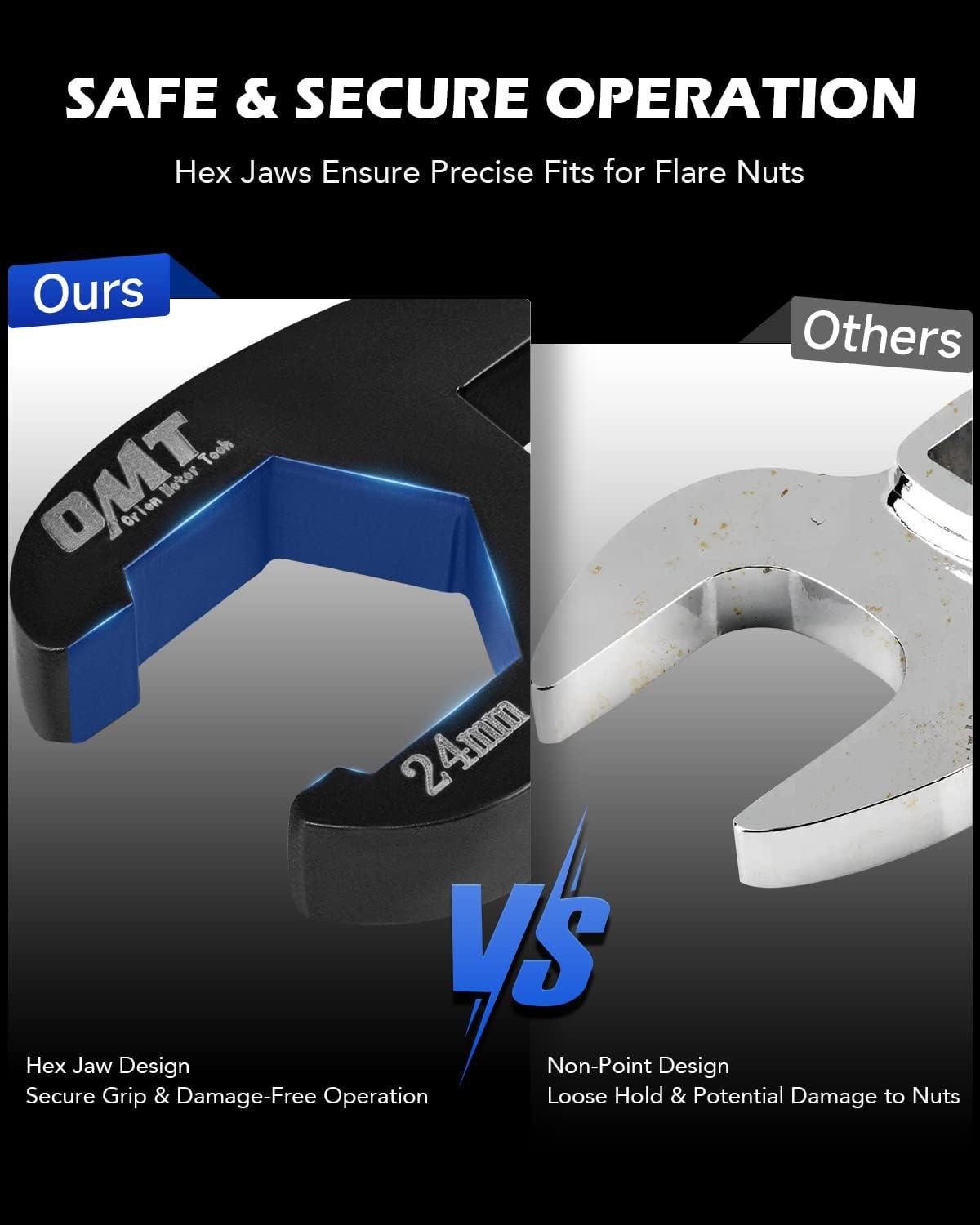 Hex Design for Secure & Firm Grip: With our hex design, the crowfoot wrenches offer a secure and stable grip on flare nuts, while preventing any potential wear and damage