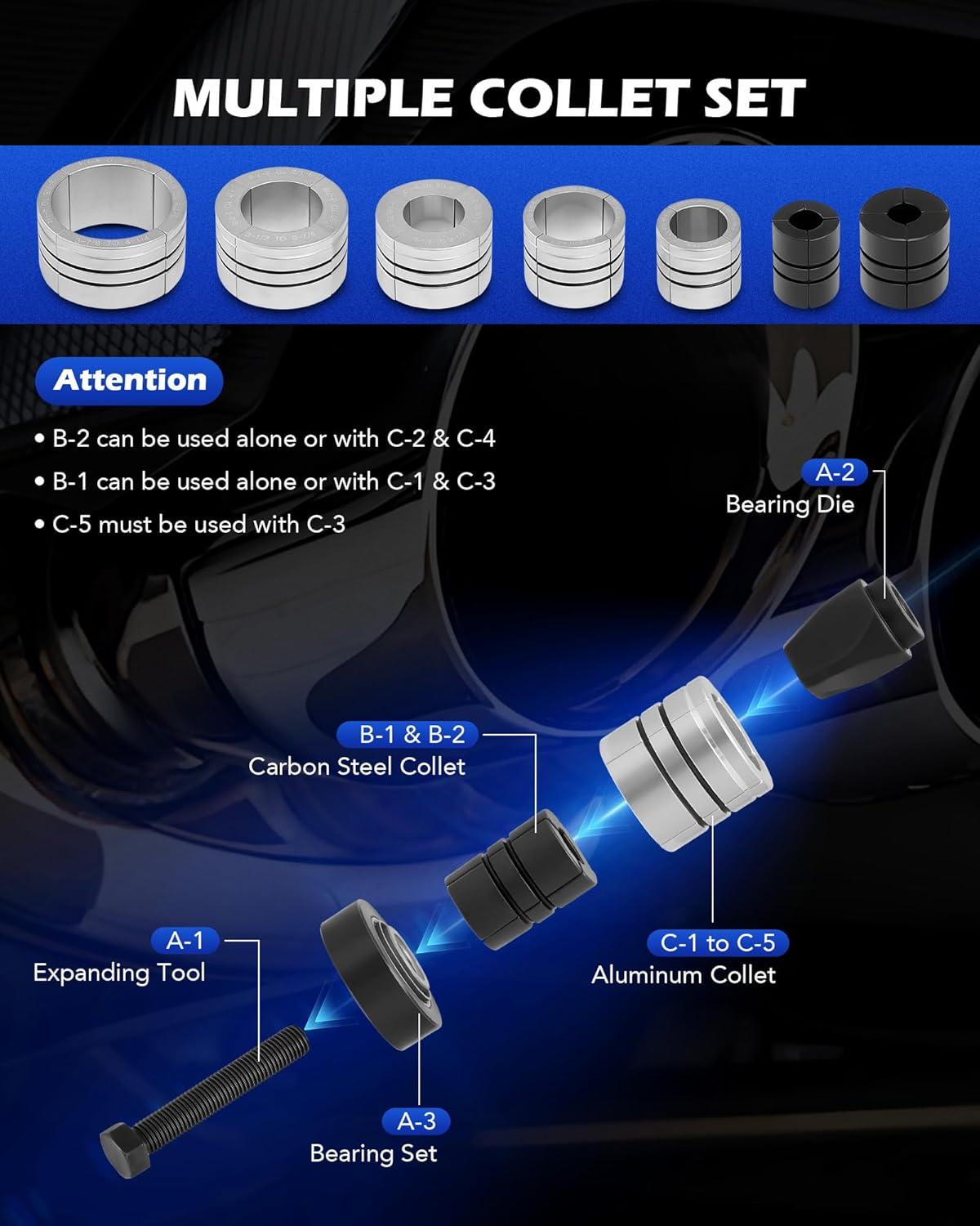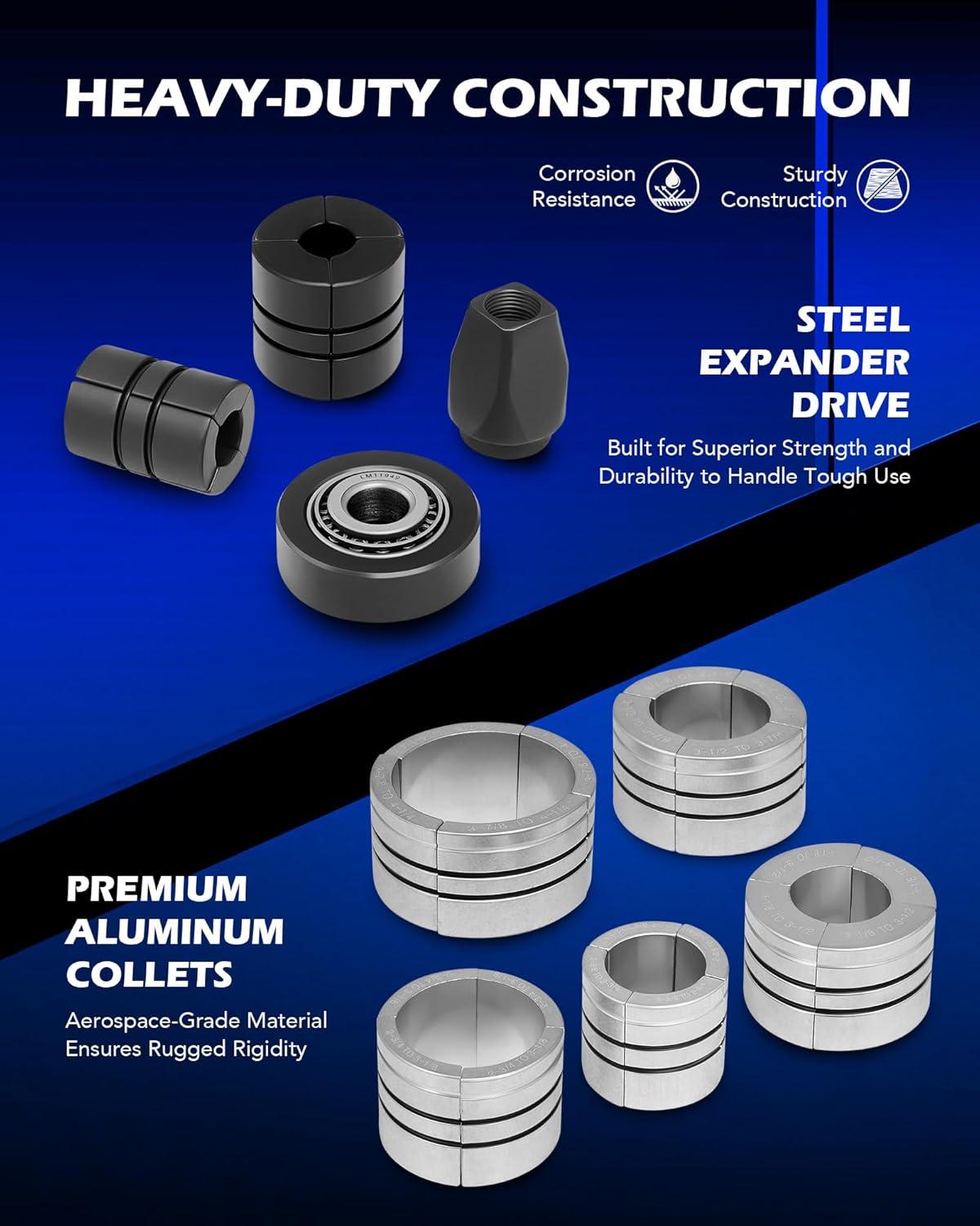 Wide Expansion Range: This exhaust pipe stretcher comes with multiple collets to accommodate exhaust pipes ranging from 1-5/8″ to 4-1/4″ in diameter, ensuring a precise fit for various exhaust systems