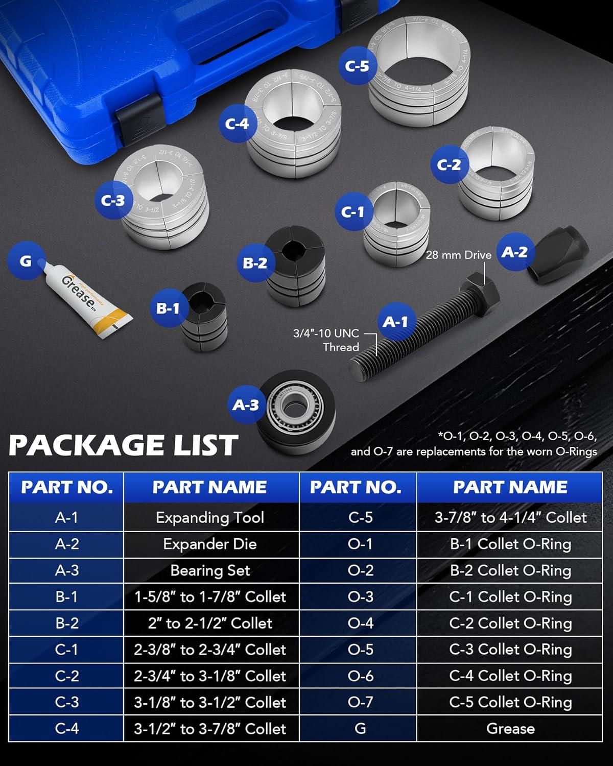 Easy to Organize & Transport: This exhaust tubing expander kit comes with a blow-molded storage case to hold and organize all the parts for easy transport and storage between jobs