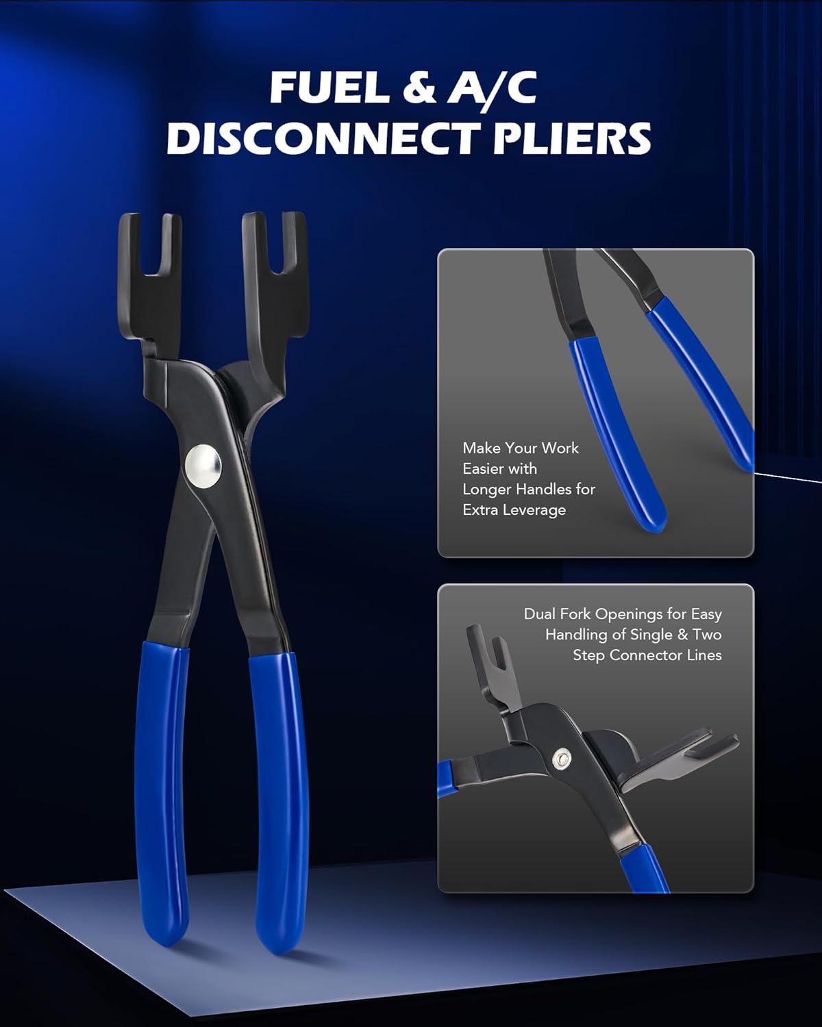 Effortless Disconnect & Reconnect: Our included fuel & A/C disconnect tools simplify managing air conditioning and fuel lines. With extended handles for added leverage, and the dual fork openings accommodate both single & two-step collar connector lines
