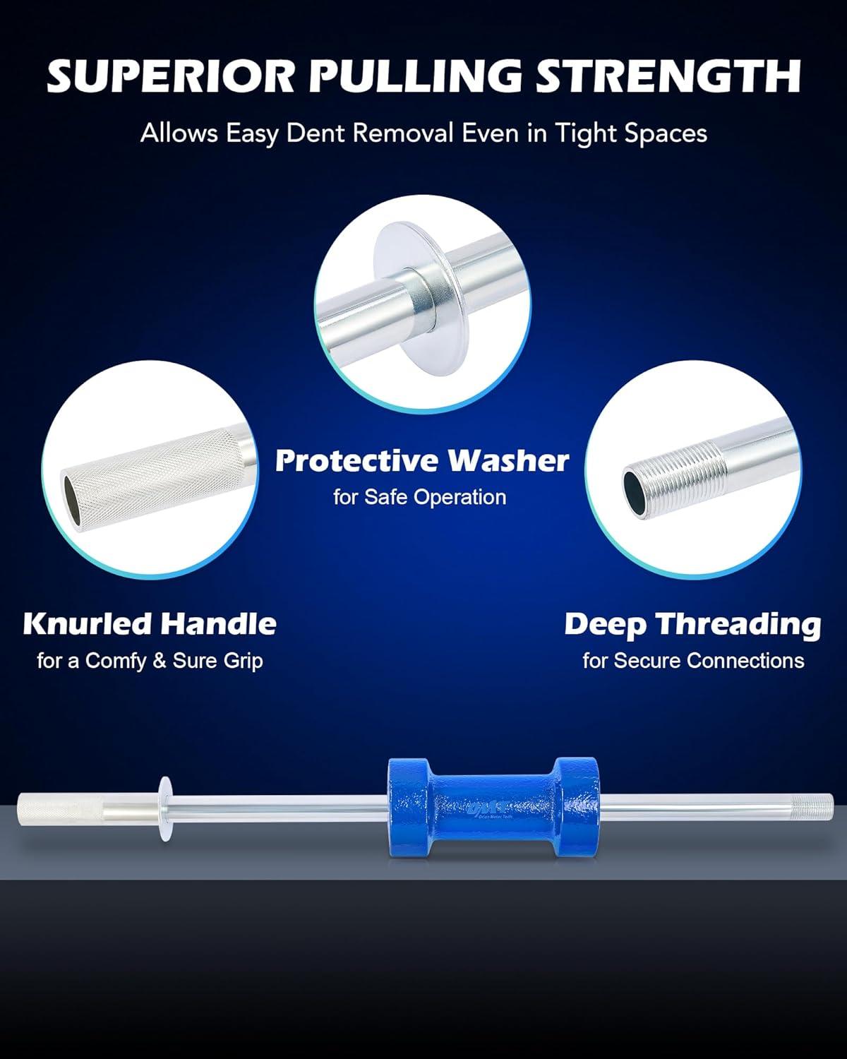 DURABLE CONSTRUCTION: Made of premium carbon steel, these dent remover tools for cars provide dependable long-lasting service, with each part heat treated and coated for superior strength and corrosion resistance