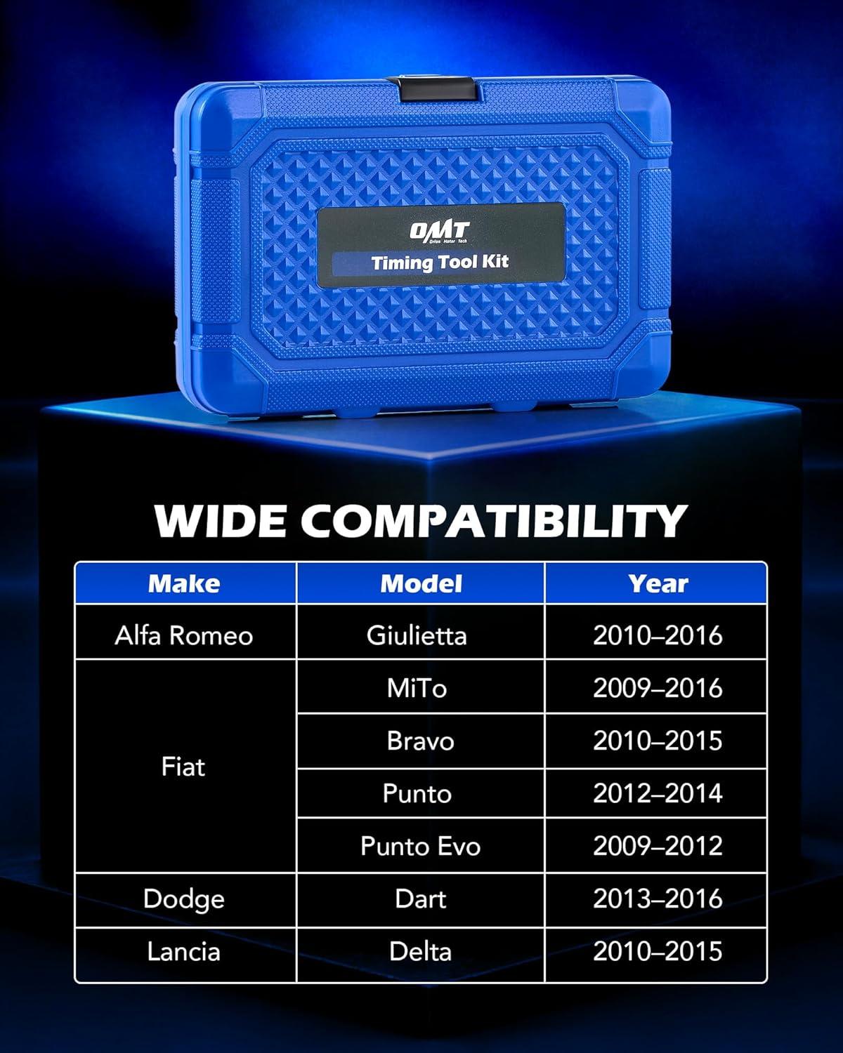 WIDE COMPATIBILITY: This versatile engine timing kit is compatible with Alfa Romeo Giulietta (2010-2016), MiTo (2009-2016), Dodge Delta (2011-2014), Fiat Bravo (2010-2015), Punto (2012-2014), Punto Evo (2009-2012), and Lancia Delta (2010-2015) Engine Codes: 955A6.000, 955A2.000, 955A7.000, 198A7.000, 940A2.000, 955A8.000