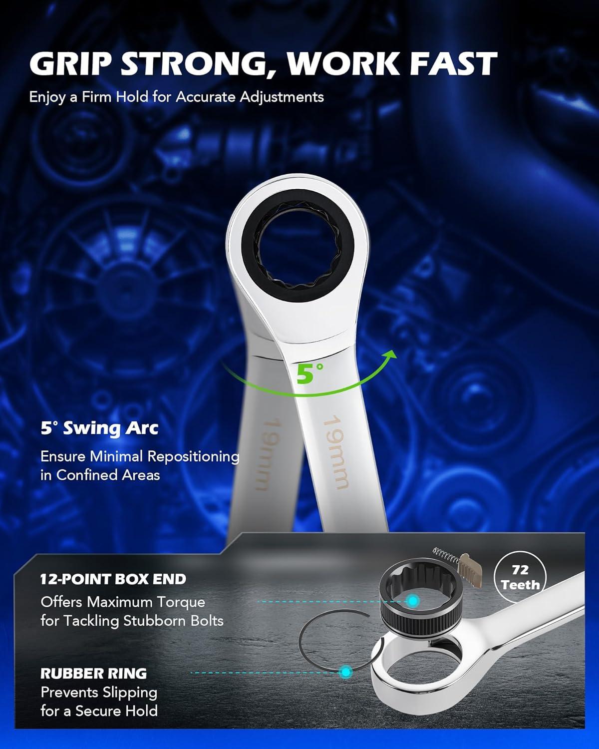 High-Efficiency Performance: The 72-tooth ratchet offers a 5° swing arc, allowing precise maneuverability in tight spaces. Use it with the extension bar for hard-to-reach pulleys, while the sockets, adapters, and crowfoot wrenches fit most vehicle types