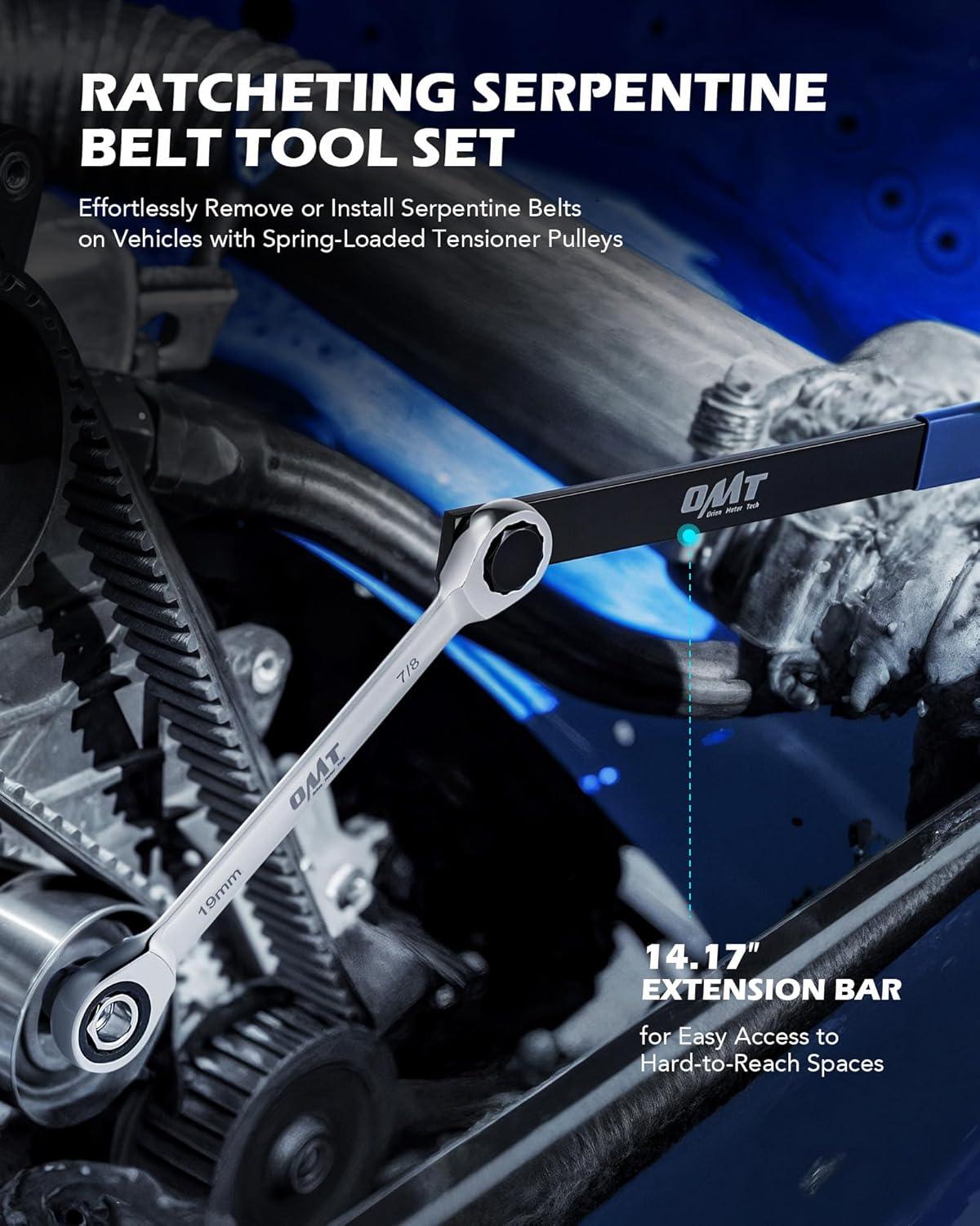 Effortless Serpentine Belt Removal & Installation: Orion Motor Tech's ratcheting serpentine belt tool set simplifies the process of removing and installing belts on vehicles with spring-loaded tensioner pulleys, making your tasks faster and easier