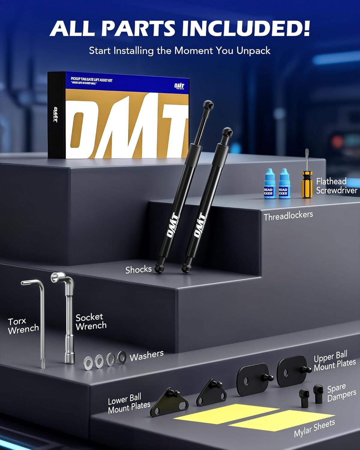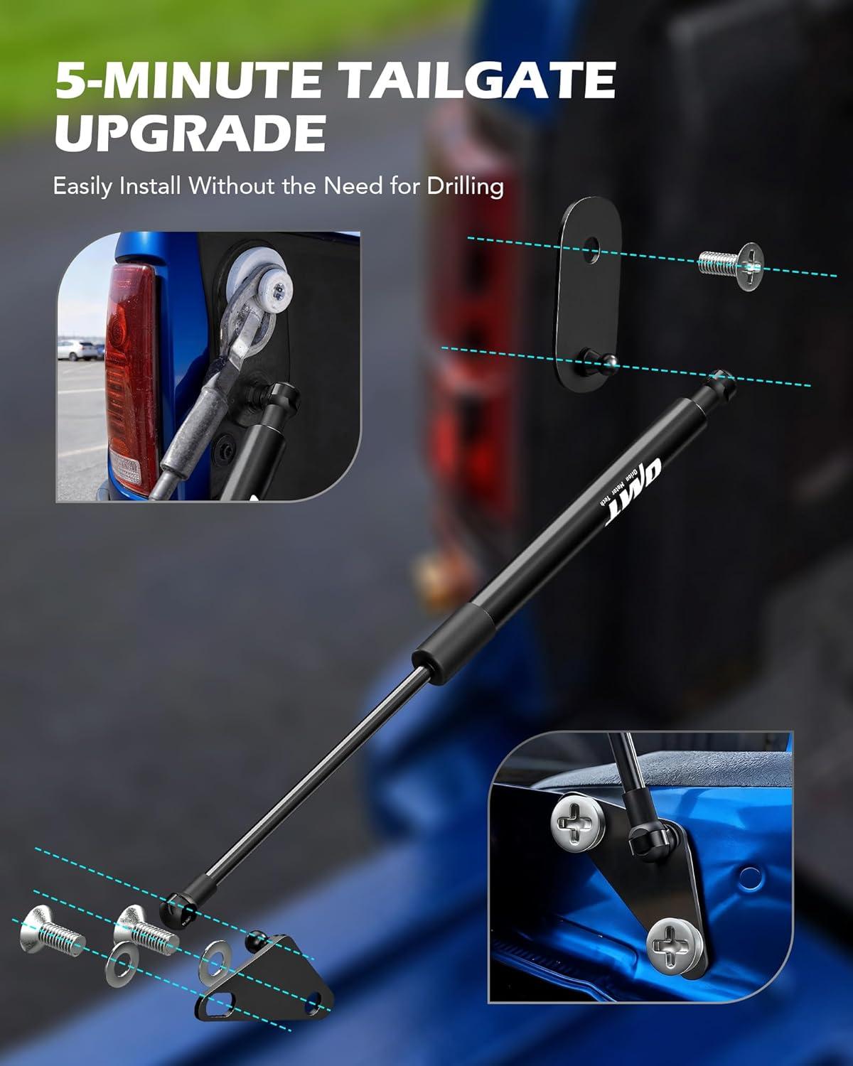 Quick, Easy, Done: Get your tailgate assists installed in just 3 minutes, complete with all hardware included, no drilling or complicated steps required! The included mylar sheets will keep your truck scratch-free during the upgrade