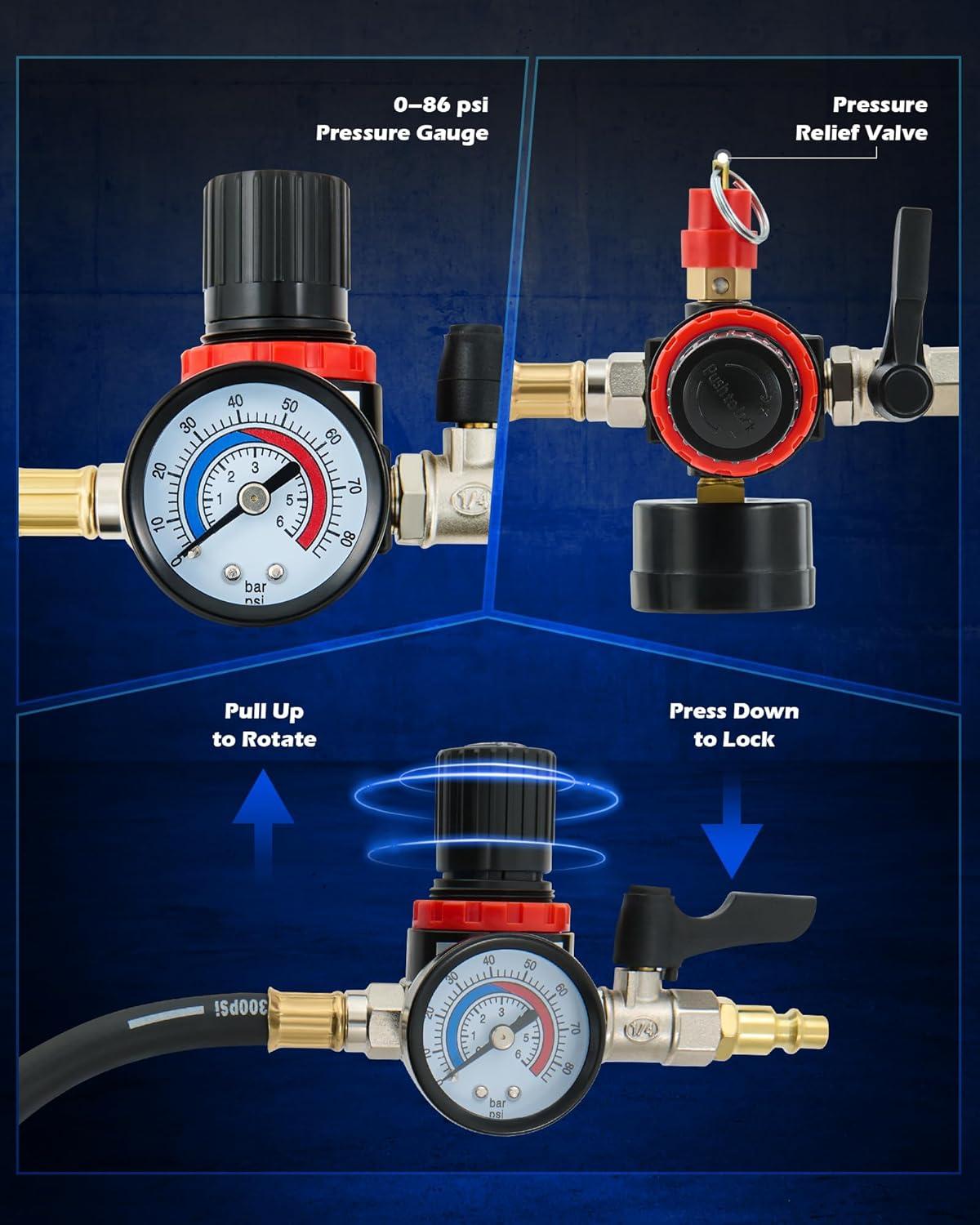 Comprehensive Set: Equipped with 4 test adapters, 4 blanking adapters, a 0-86 psi pressure gauge assembly, a DIN adapter, and a pair of gloves, this turbo system pressure leakage tester kit provides all the essentials for thorough and hassle-free testing