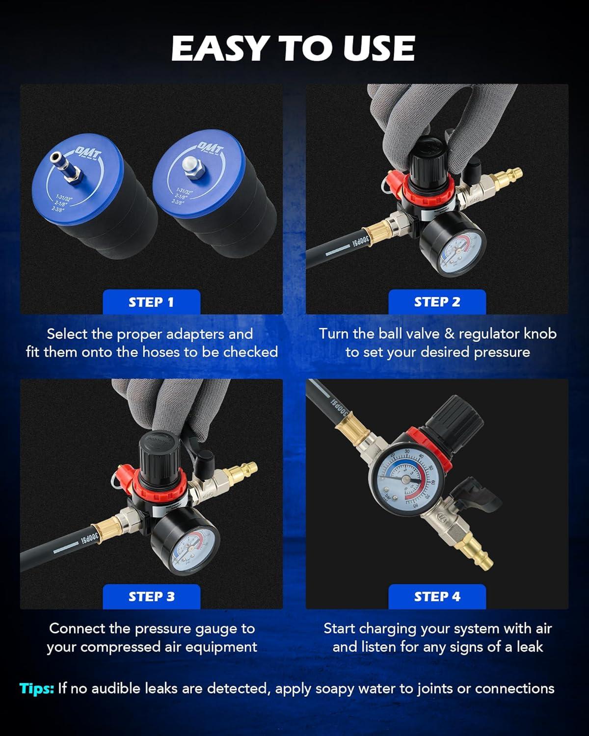 Easy & Efficient Operation: Just attach the adapters, connect the pressure gauge to your workshop airline, pressurize the system, and check for leaks. The airtight stepped design of these adapters ensures a secure fit for precise leak detection