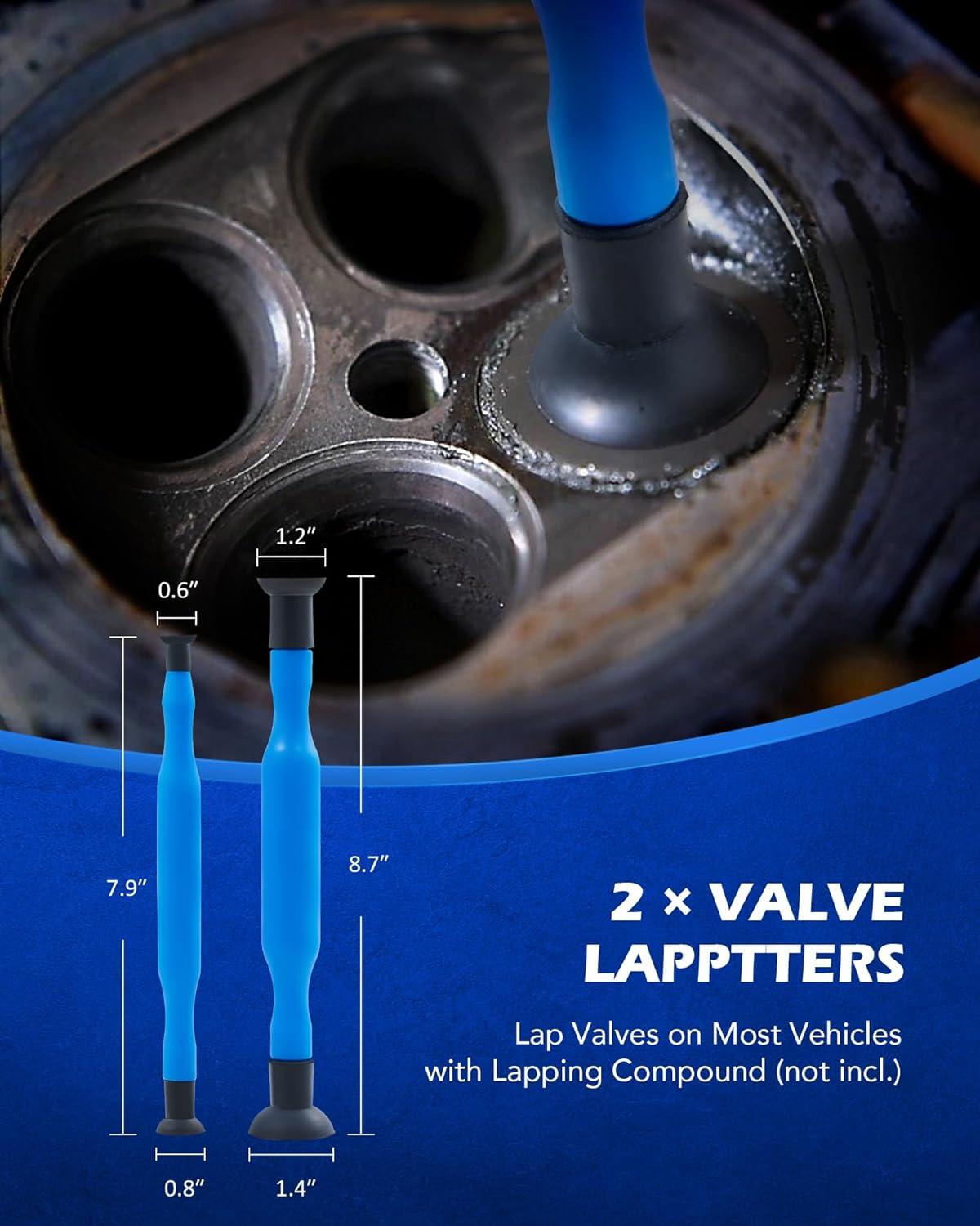 CONVENIENT GRINDING: Our valve retainer and spring remover set comes with 2 dual ended valve lapping tools to grind and polish valve heads and seats, facilitating engine maintenance and rebuilding